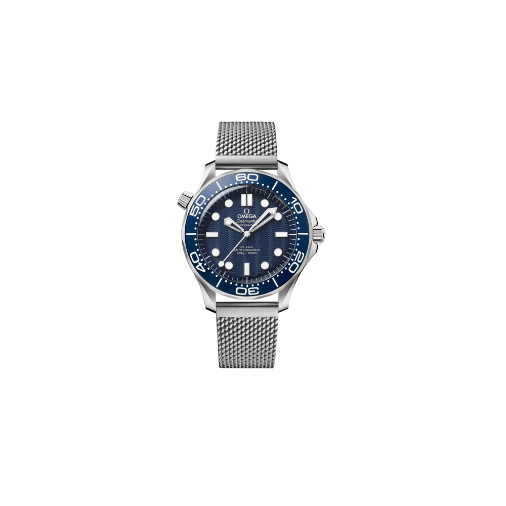 Lanciato nel 2022 in occasione del 60° anniversario di James Bond e ispirato all’originale Seamaster Diver 300M indossato dall’agente segreto britannico nella pellicola GoldenEye del 1995, questo Seamaster Diver 300M da 42 mm in acciaio inossidabile presenta un quadrante in alluminio anodizzato blu con motivo a onde inciso al laser. Il numero commemorativo 60 sostituisce il tradizionale triangolo invertito nella scala graduata.