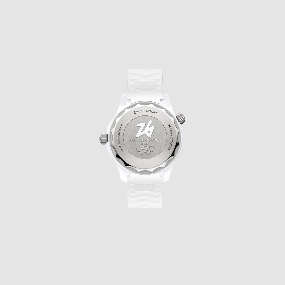 Omaggio al ruolo di OMEGA come Cronometrista Ufficiale dei Giochi Olimpici Invernali, questo esclusivo Seamaster Diver 300M unisce un design sportivo a dettagli unici per celebrare Milano Cortina 2026.