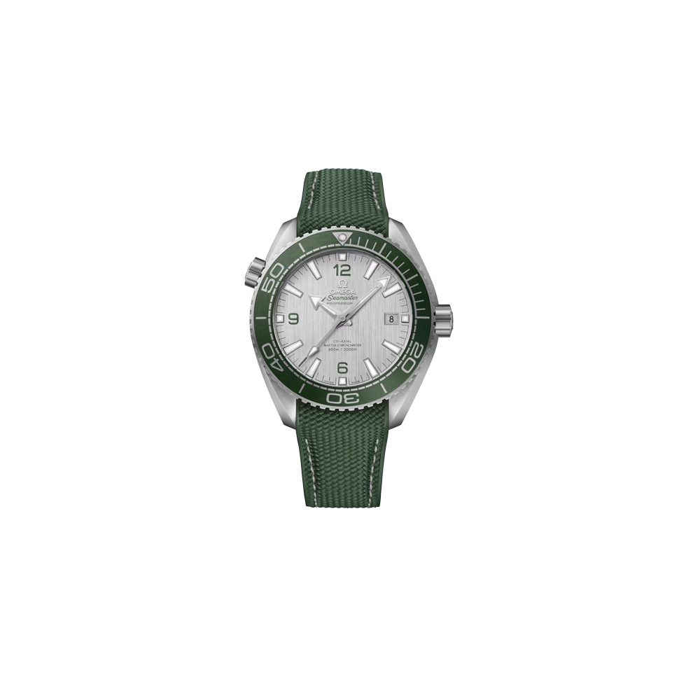 Il quadrante in acciaio inossidabile spazzolato include un datario a finestrella a ore 3, numeri arabi verniciati verdi e iscrizioni applicate in verde e nero. Il logo OMEGA, le lancette e gli indici delle ore sono in acciaio inossidabile con trattamento in PVD e finitura spazzolata e sono riempiti di Super-LumiNova bianca che ne migliora la visibilità in condizioni di scarsa illuminazione.